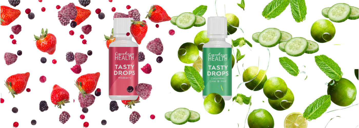 Prova våra goda smakdroppar med smak av vilda bär eller gurka, lime och mynta. Använd dem gärna i ett glas vatten med kollagenpulver om du vill ge din dagliga kollagenboost en frisk smak.